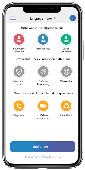 EngageFlow ™ creates an individual guide for an appointment with a doctor with 3 clicks. Here the employee selects: